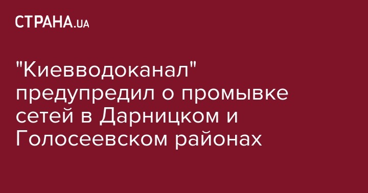 "Киевводоканал" объявил о плановой профилактической промывке сетей в ближайшие дни. В ночь с 11 на 12 апреля работы будут проводиться в поселке Чапаевка (Голосеевский район города) с 24:00 до 02:00, а с 13 на 14 апреля, с 23:00 до 7:00 утра в Дарницком районе. Об этом сообщает пресс-служба водоканала.