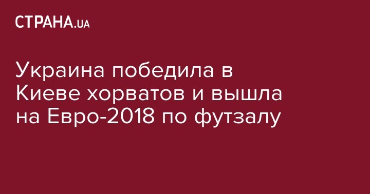 Сборная Украины по футзалу победила сборную Хорватии со счетом 2:1 и таким образом квалифицировалась в финальную стадию Евро-2018 в Словению напрямую с первого места в группе.