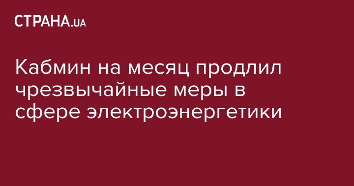 Сегодня, 12 апреля, Кабинет министров Украины продлил введенные 17 февраля временные чрезвычайные меры в энергетике до мая месяца. Соответствующее решение было принято в ходе сегодняшнего заседания правительства.
