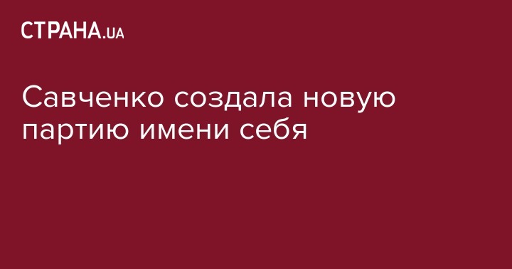 Внефракционный народный депутат Надежда Савченко создала новую политическую партию - "Общественно-политическая платформа Надежды Савченко". Об этом сообщает "Стране" источник близкий к руководству политсилы.