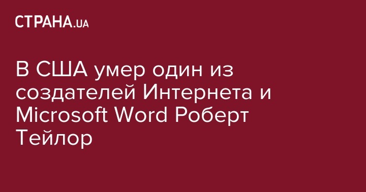 В Сан-Франциско от болезни Паркинсона скончался Роберт Тейлор, принимавший участие в создании элементов для современного интернета и персонального компьютера, сообщила The Los Angeles Times. Тейлор, которому исполнилось 85 лет, умер в четверг, 13 апреля.