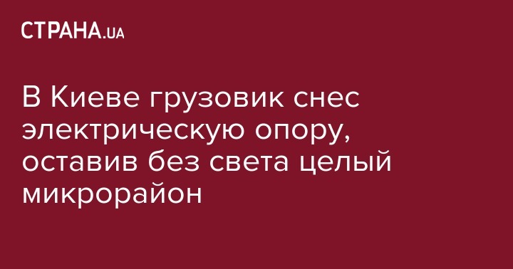 В Киеве грузовик снес электрическую опору, оставив без света целый микрорайон