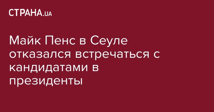 Вице-президент США Майк Пенс отказался от встречи с претендентами на пост президента Республики Корея представителем либеральной Демократической партии "Тобуро" Мун Чжэ Ин Хе и представителем центристской "Народной партии" Ан Чхоль Су во время своего двухдневного визита в Сеул.