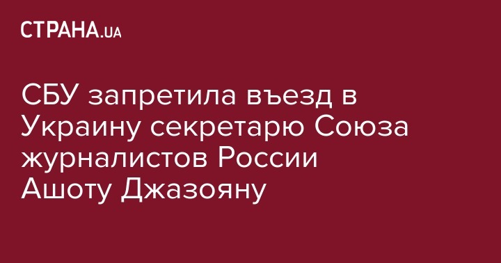 "СБУ признала достаточной имеющуюся информацию относительно действий представителя СЖР Ашота Джазояна "о факте совершения общественно опасного деяния, которое противоречит интересам обеспечения безопасности Украины" и вынесла постановление о запрете въезда на Украину сроком на три года", - сказано в сообщении.