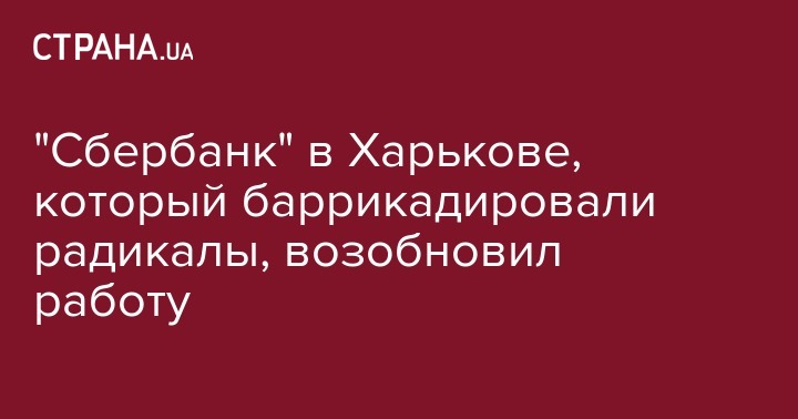 Отделение "Сбербанка" возобновил работу отделения в Харькове по ул. Донец-Захаржевского, 2. Об этом сообщают "Украинские новости" со ссылкой на пресс-службу финучреждения.