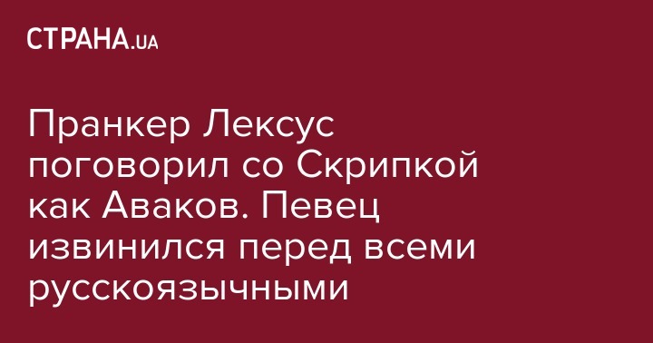 Пранкер Лексус поговорил со Скрипкой как Аваков. Певец извинился перед всеми русскоязычными