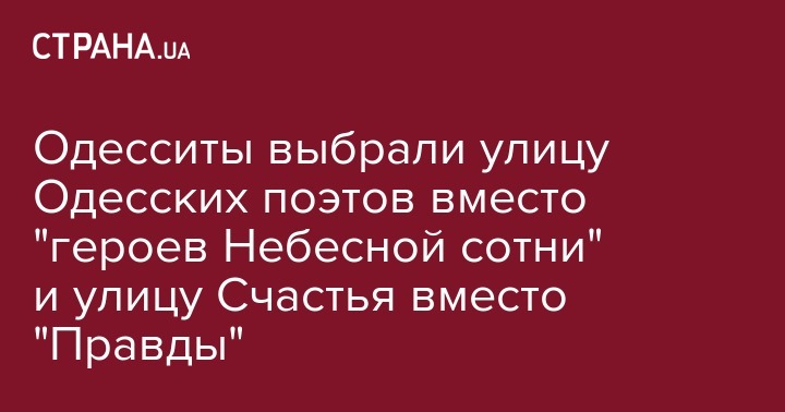Одесситы выбрали улицу Одесских поэтов вместо "героев Небесной сотни" и улицу Счастья вместо "Правды"