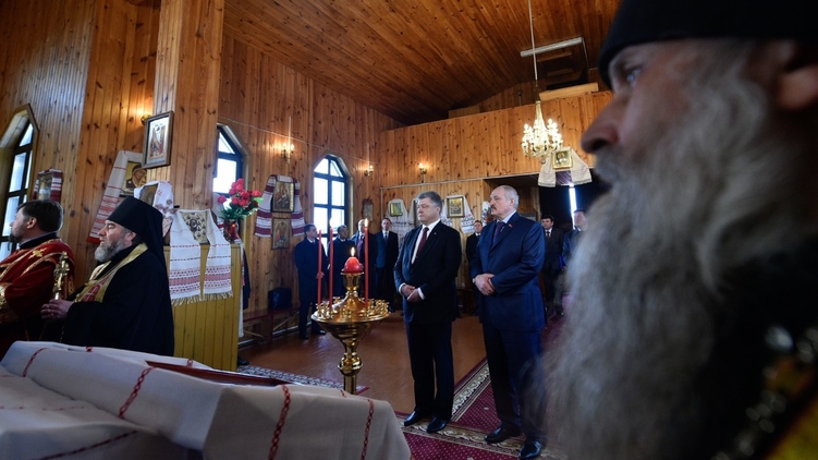 Президент Украины Петр Порошенко во время рабочего визита в Белоруссию вместе с президентом Беларуси Александром Лукашенко посетил Свято-Михайловскую церковь и помолились за мир. Об этом сообщает пресс-служба украинского гаранта.