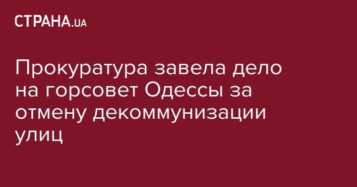 Сегодня, 27 апреля, прокуратура Одесской области начала уголовное производство, в связи с решением Одесского горсовета о переименовании городских улиц. Об этом сообщается на сайте ведомства.