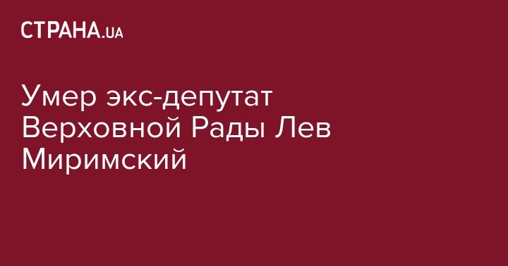По информации источника, смерти Миримского предшествовали два инсульта, в больницу в критическом состоянии он попал по "скорой помощи", а сегодня под утро у экс-депутата остановилось сердце.