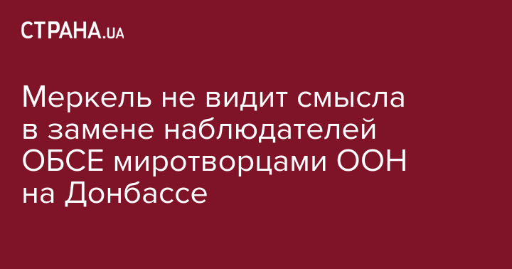 Канцлер Германии Ангела Меркель считает, что нет смысла менять миссию ОБСЕ на Донбассе на миротворцев ООН, как предложил ранее президент Украины Петр Порошенко.