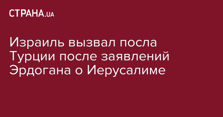 МИД Израиля вызвал для объяснений турецкого посла Кемаля Окема после заявлений президента Турции Реджепа Эрдогана в адрес Израиля. Об этом сообщает "Интерфакс Украина".
