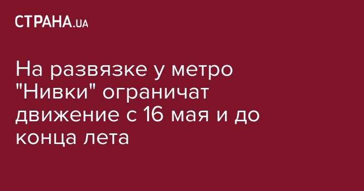 "С 16 мая по 20 августа 2017 продлятся работы по реконструкции транспортного узла на пересечении проспекта Победы с улицей Даниила Щербакивского. Как сообщает КП "Киевавтодор", в рамках ремонтных работ с 16 мая будет ограничено движение транспорта на путепроводе возле станции метро "Нивки" в направлении центра города. Движение транспорта будет осуществляться низовой частью просп. Победы", - уточнили в пресс-службе КГГА.