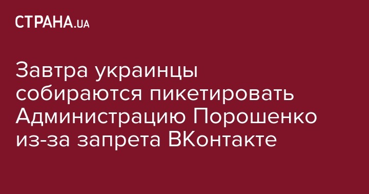 19 мая, украинские пользователи соцсети "Вконтакте" собираются устроить пикет под стенами Администрации президента из-за указа Петра Порошенко про запрет самой популярной в Украине соцсети. Сообщение о событие создано в VK и активно распространяется по разным группам под хештегами #savevk и #вкживи.