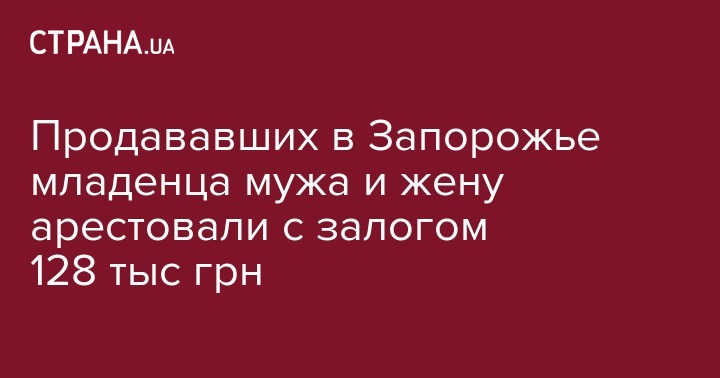 В Запорожье суд арестовал супругов, задержанных 16 мая сотрудниками правоохранительных органов за продажу за 7 тыс. долларов США новорожденной девочки, своей дочери.