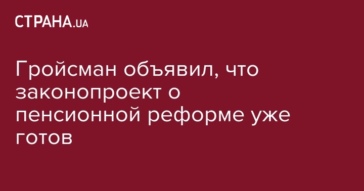 Премьер-министр Владимир Гройсман заявил о том, что разработанный законопроект о пенсионной реформе уже готов. По словам главы Кабмина, документ будет рассмотрен на заседании Национального совета реформ.