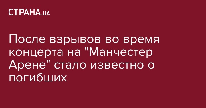В результате двух взрывов, прогремевших на стадионе "Манчестер Арена" в одноименном английском городе, погибли люди, а также поступают сообщения о многочисленных раненых.