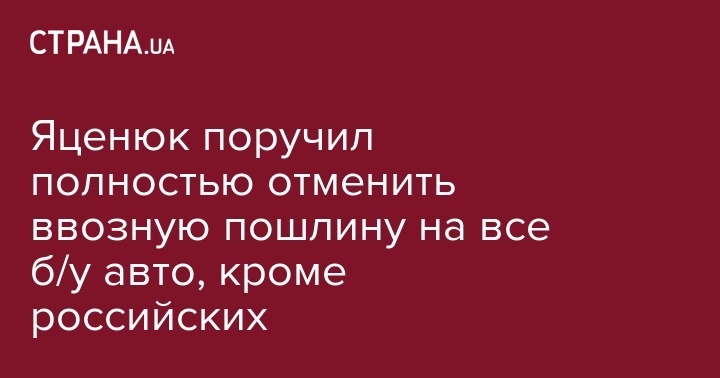 Премьер-министр Украины Арсений Яценюк на заседании правительства в среду, 6 апреля, поручил отменить на ввозные пошлины на б/у автомобили за исключением российских. Об этом сообщает «Интерфакс».