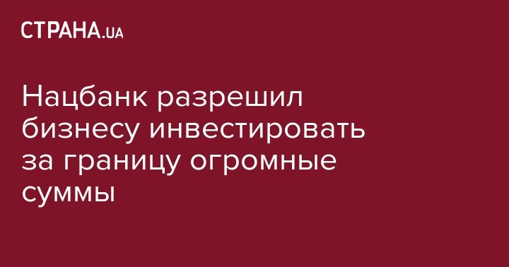Национальный банк Украины увеличил для бизнеса лимит инвестирования за рубеж с $50 тыс. за один календарный месяц до $2 млн на основании одной валютной лицензии за один календарный год. Об этом сообщает пресс-служба регулятора.
