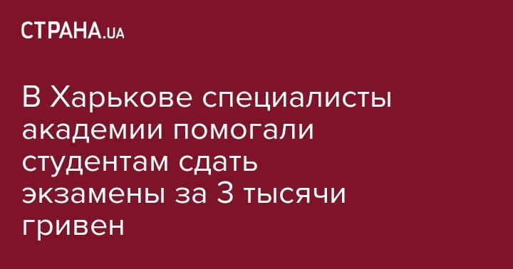 Сообщается, что начальник отдела и главный специалист одной из харьковских академий были задержаны во время получения от студента 3 тысяч гривен за успешную сдачу экзаменов и перевод его на следующий учебный курс.