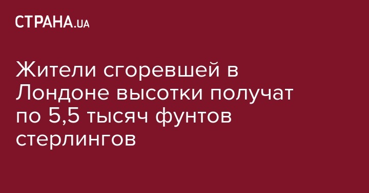 Жители высотного здания Grenfell Tower на территории лондонского района Кенсингтон, где в ночь на 14 июня произошел пожар, получат по 5,5 тыс. фунтов стерлингов (182 тыс грн) из специально созданного британскими властями фонда.