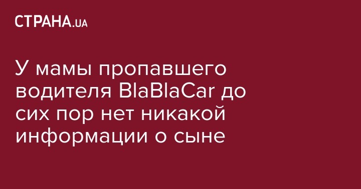 "Я так устала от всех этих телефонных звонков, но на данный момент у меня нет никакой информации о том, где сейчас находится мой сын", - сказала мама пропавшего водителя BlaBlaCar Ольга Васильевна в разговоре с корреспондентом "Страны".