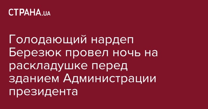 Голодающий нардеп Березюк провел ночь на раскладушке перед зданием Администрации президента