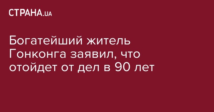 Богатейший житель Гонконга заявил, что отойдет от дел в 90 лет