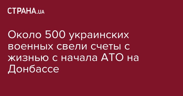 С начала военных действий и по состоянию на начало июня 2017 года зарегистрировано около 500 случаев самоубийств военных, которые воевали в зоне АТО на Донбассе. Об этом говорится в статье главы МВД Арсена Авакова "Стратегия гибридного мира" для "Украинской правды".