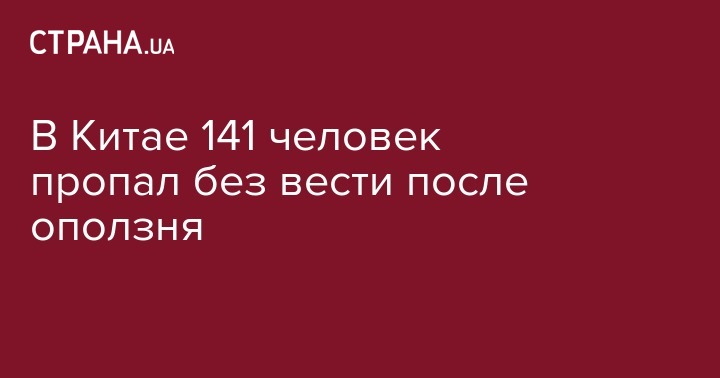 Сегодня утром, 24 июня, в Китае  произошел оползень, пропавшими без вести считается 141 человек.  Об этом сообщает агентство Xinhuanet.