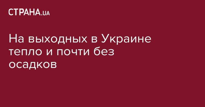 В субботу и воскресенье в большинстве областей Украины синоптики обещают теплую и солнечную погоду. По информации Укргидрометцентра по всей территории Украины дневная температура будет колебаться между отметками +20 +23, преимущественно без осадков.