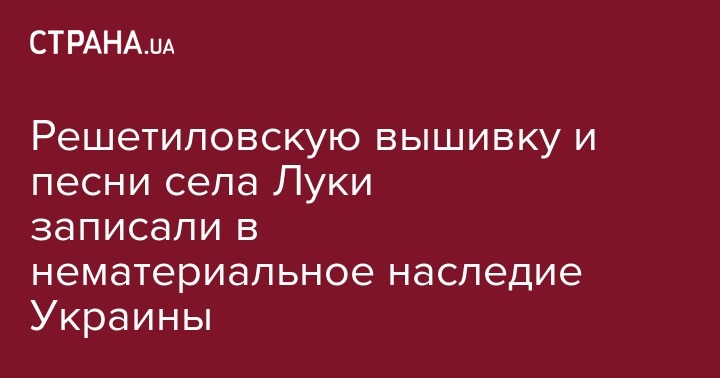Минкульт включил в Национальный перечень нематериального наследия решетиловскую вышивку "белым по белому" и песенную традицию Киевской области. Об этом сообщает пресс-служба Кабмина.
