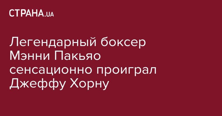 Легендарный боксер Мэнни Пакьяо сенсационно проиграл Джеффу Хорну