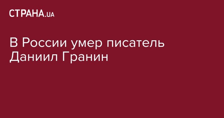 В Петербурге, на 99-м году жизни, умер писатель Даниил Гранин, автор произведений об ученых, блокаде Ленинграда и Великой отечественной войне. Об этом со ссылкой на медицинские источники сообщает "Интерфакс".