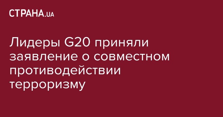 "Мы, лидеры Большой двадцатки, решительно осуждаем все террористические атаки по всему миру и занимаем единую и твердую позицию в борьбе с терроризмом и его финансированием", - говорится в заявлении.