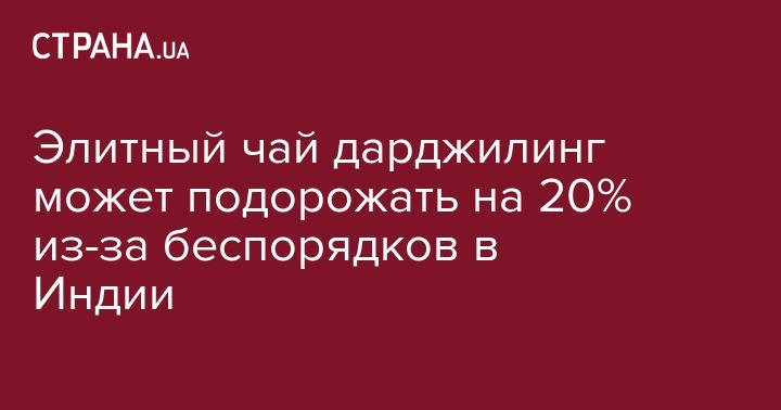 Чайные плантации вокруг индийского города Дарджилинг были вынуждены приостановить работу в разгар сбора урожая из-за массовых беспорядков и акций протеста, и, по мнению экспертов, одноименный сорт чая может подорожать на 20% в текущем году. Об этом передает "Интерфакс" со ссылкой на Financial Times.