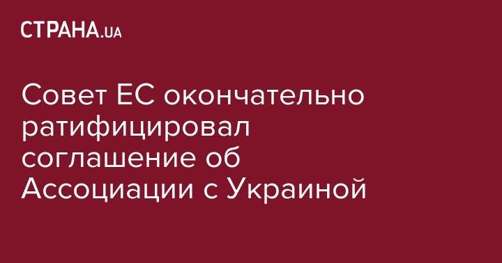 Совет Евросоюза окончательно ратифицировал соглашение об Ассоциации с Украиной. Об этом сообщает в Twitter корреспондент "Радио Свобода" в Брюсселе Рикард Йозвяк.