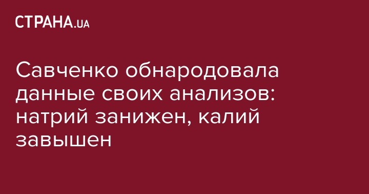Норма натрия в крови украинского летчицы Надежды Савченко, которую суд в России приговорил к 22 годам лишения свободы, занижена, а норма калия завышена в четыре раза, то есть, сердце может остановиться в любую минуту. Письмо Савченко на своей странице в социальной сети Facebook опубликовала ее сестра.