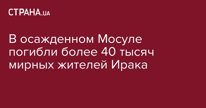 Более 40 тысяч мирных жителей погибли в результате сражений за освобождение иракского города Мосул от боевиков террористической группировки "Исламское государство".