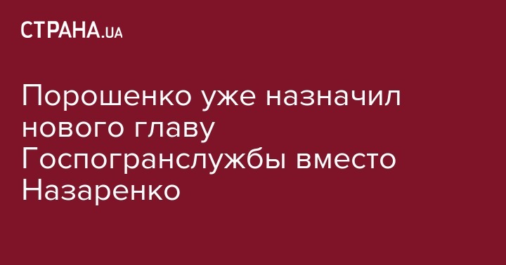 Президент Петр Порошенко уже назначил нового главу Государственной пограничной службы вместо Виктора Назаренко, который подал в отставку после потери сознания в Администрации президента на прошлой неделе. Об этом сообщил спикер Госпогранслужбы Олег Слободян, передает "Громадськое радио".