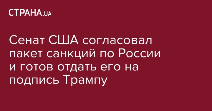 Сенат США согласовал пакет санкций в отношении России, Ирана и КНДР и готов представить его на подпись президенту Дональду Трампу. Об этом сообщает "112 Украина".