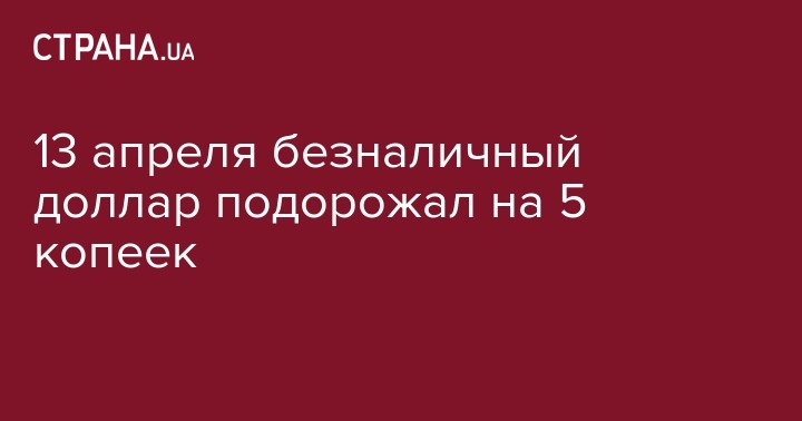 В среду, 13 апреля, безналичный курс доллара приподнялся на 5 копеек и зафиксировался на уровне аукциона Нацбанка. Об этом сообщил директор департамента казначейства Евробанка Василий Невмержицкий, передает UBR.ua.