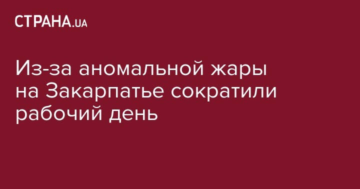 На Закарпатье рабочий день с 2 по 10 августа сократили на час в связи с прогнозом синоптиков об аномально высокой температуре в этот период. Распоряжение подписал председатель Закарпатской ОГА Геннадий Москаль, говорится на его сайте.