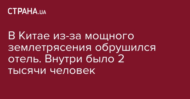 В Китае из-за мощного землетрясения обрушился отель. Внутри было 2 тысячи человек