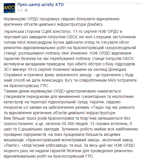При этом украинская сторона СЦКК в кратчайшие сроки получала гарантии безопасности от Вооруженных Сил Украины и посылала соответствующие обращения российской стороне СЦКК по содействию в получении письменных гарантий безопасности от представителей ОРДО.
