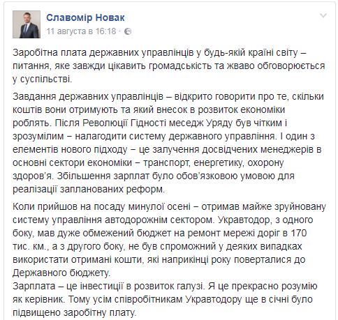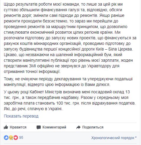 Глава "Укравтодора" Новак рассказал о маленьком окладе в 13 тысяч гривен