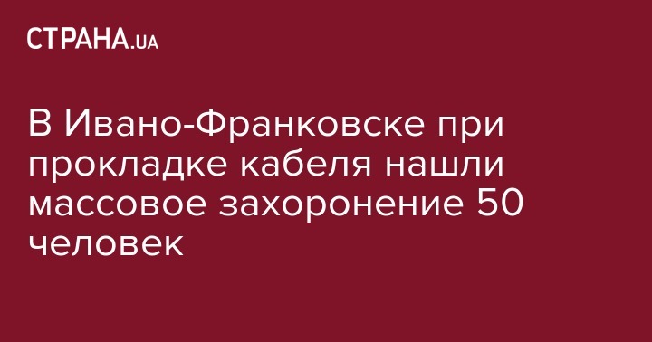 В Ивано-Франковске во время прокладки кабеля в районе центрального городского озера нашли массовое захоронение, в котором находятся останки по меньшей мере 50 человек. Об этом сообщает "Радио Свобода".