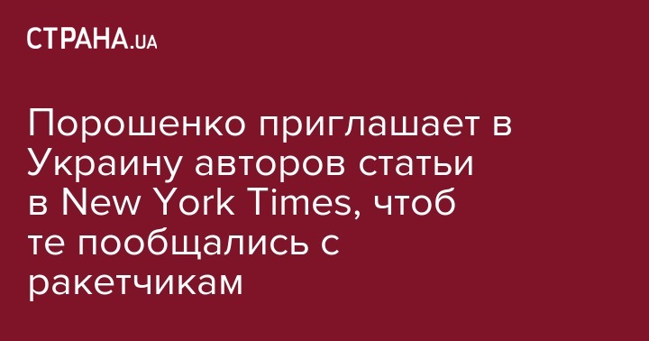 Порошенко приглашает в Украину авторов статьи в New York Times, чтоб те пообщались с ракетчикам