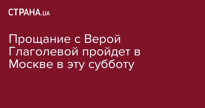 Прощание с известной российской актрисой и режиссером Верой Глаголевой состоится 19 августа в Центральном доме кинематографистов. Об этом сообщает ТАСС.
