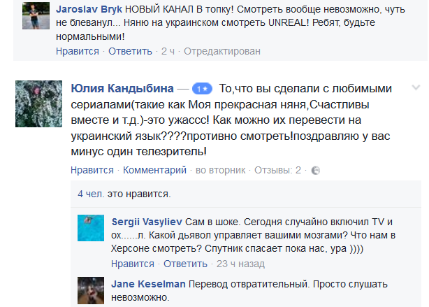 После того, как "Новый канал" начал показ российского сериала "Моя прекрасная няня" в переводе на украинский язык, пользователи соцсетей оставили множество негативных отзывов на официальной и неофициальных страницах канала в Facebook. Об этом пишет "Корреспондент".